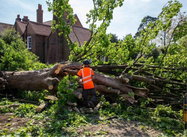 - Chainsaws and pole saws for sectioning branches.
